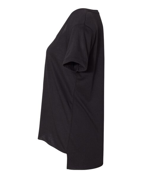 3.5 oz./yd_, 65/35 polyester/combed ring-spun cotton, 40 singles Relaxed fit 1x1 baby rib neckline Self-fabric neck Hemmed sleeve Hi-low raw edge...