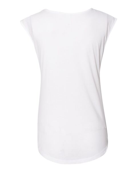 3.5 oz./yd_, 65/35 polyester/combed ringspun cotton, 40 singles Self-fabric bound v-neck and armhole Modestly curved hem Side seams Tear away label