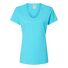 5.5 oz./yd_, US grown, 100% ring-spun cotton Pre-shrunk Contoured and side-seamed for feminine fit Mitered V-neck, coverstitched with lay flat collar...