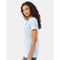 5.5 oz./yd_, US grown, 100% ring-spun cotton Pre-shrunk Contoured and side-seamed for feminine fit Mitered V-neck, coverstitched with lay flat collar...
