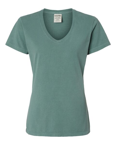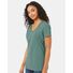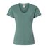 5.5 oz./yd_, US grown, 100% ring-spun cotton Pre-shrunk Contoured and side-seamed for feminine fit Mitered V-neck, coverstitched with lay flat collar...