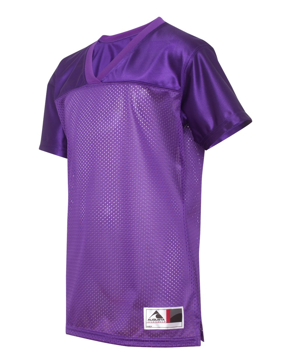 4.4 oz./yd_, 100% polyester tricot mesh 2.2 oz./yd_, 100% polyester dazzle fabric yoke and sleeves Rib-knit modified v-neck collar  Set-in sleeves...