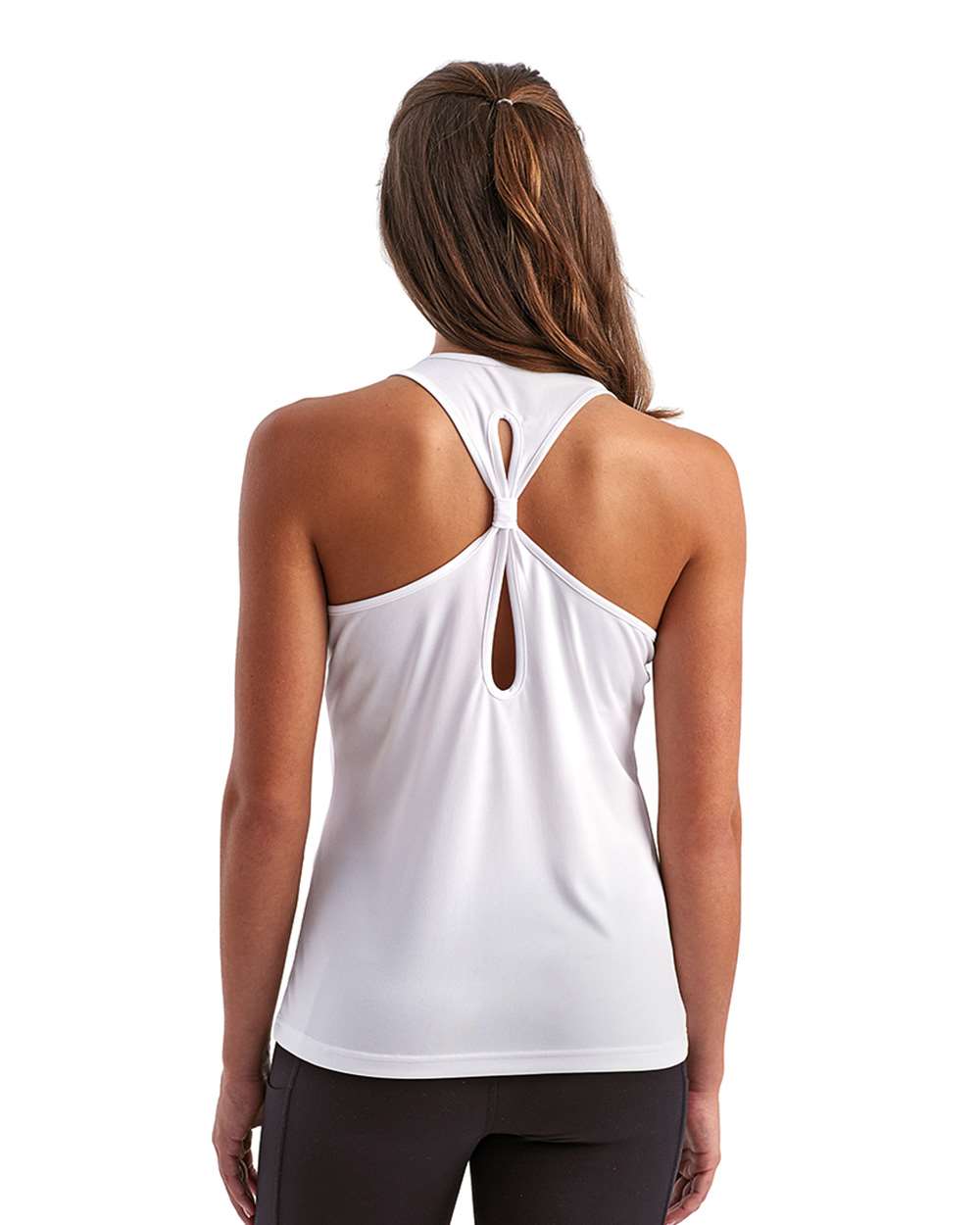 4 oz./yd_.,100% polyester Loose fit Moisture-wicking fabric Scoop neck Knot detailing to back Tear away label