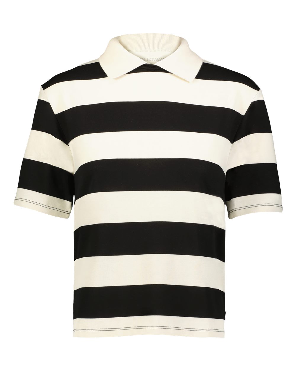 6 oz./yd_, 57/33/10 polyester/viscose/cotton yarn dyed stripe jersey Boxy fit and modest cropped length Ribbed-knit collar Set-in sleeves Side...