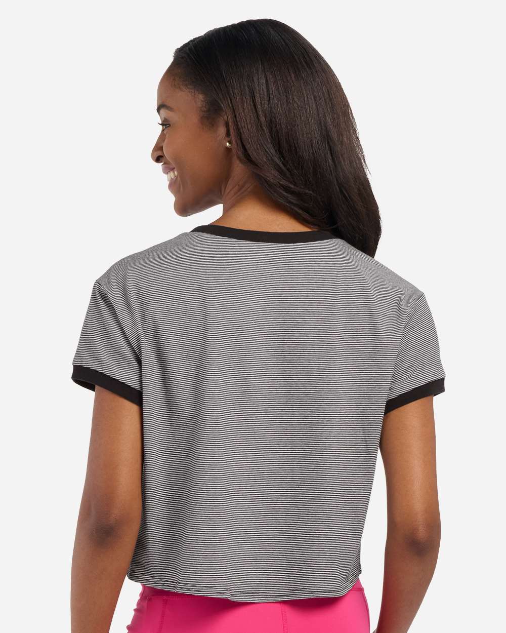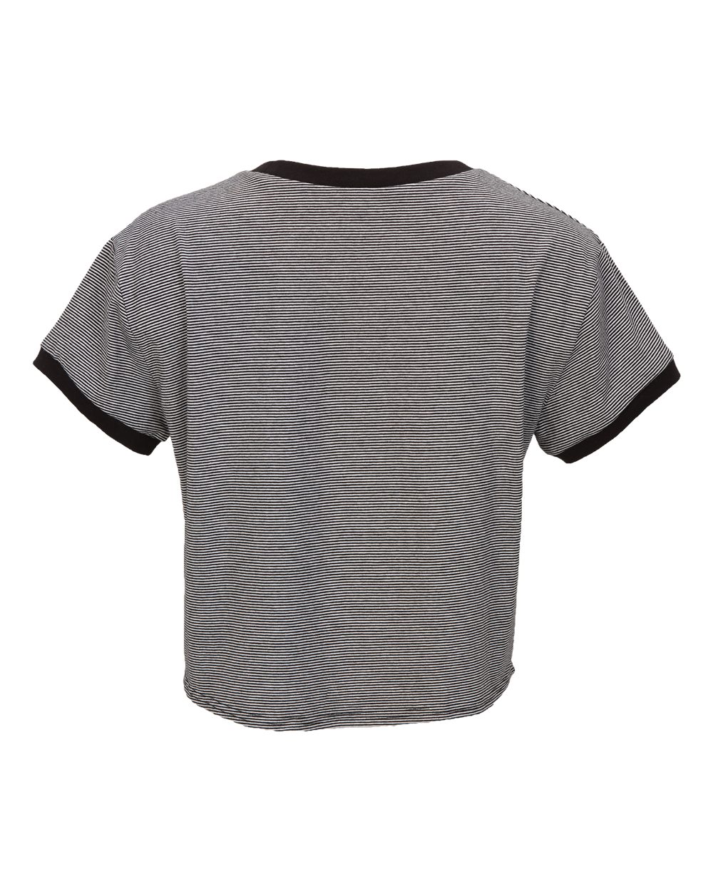 5.31 oz./yd_, 100% cotton Regular, relaxed fit Contrast trim at neck and sleeve hem Tie-front cropped length 1 1/16" stripe detail 2 NDL bottom...