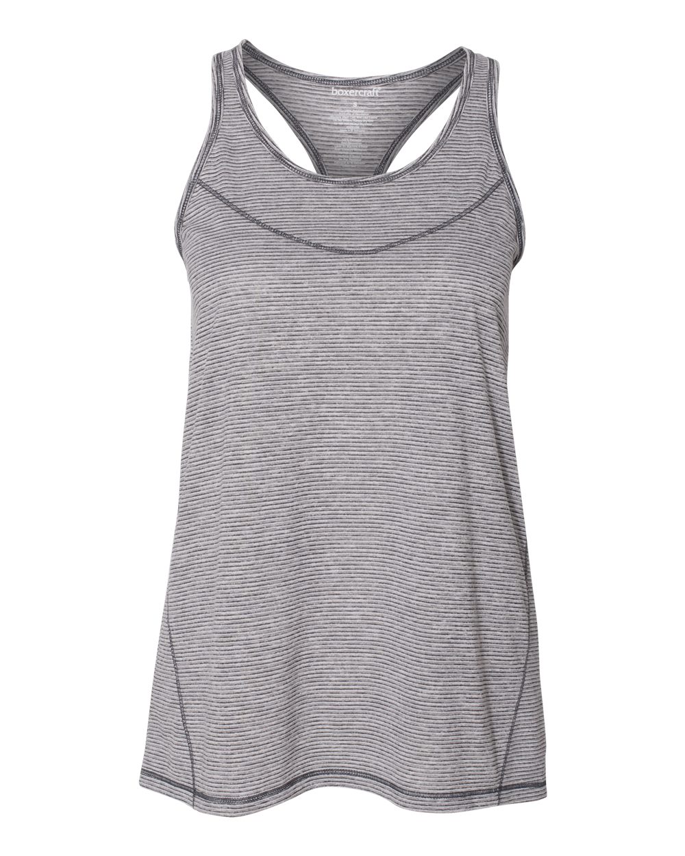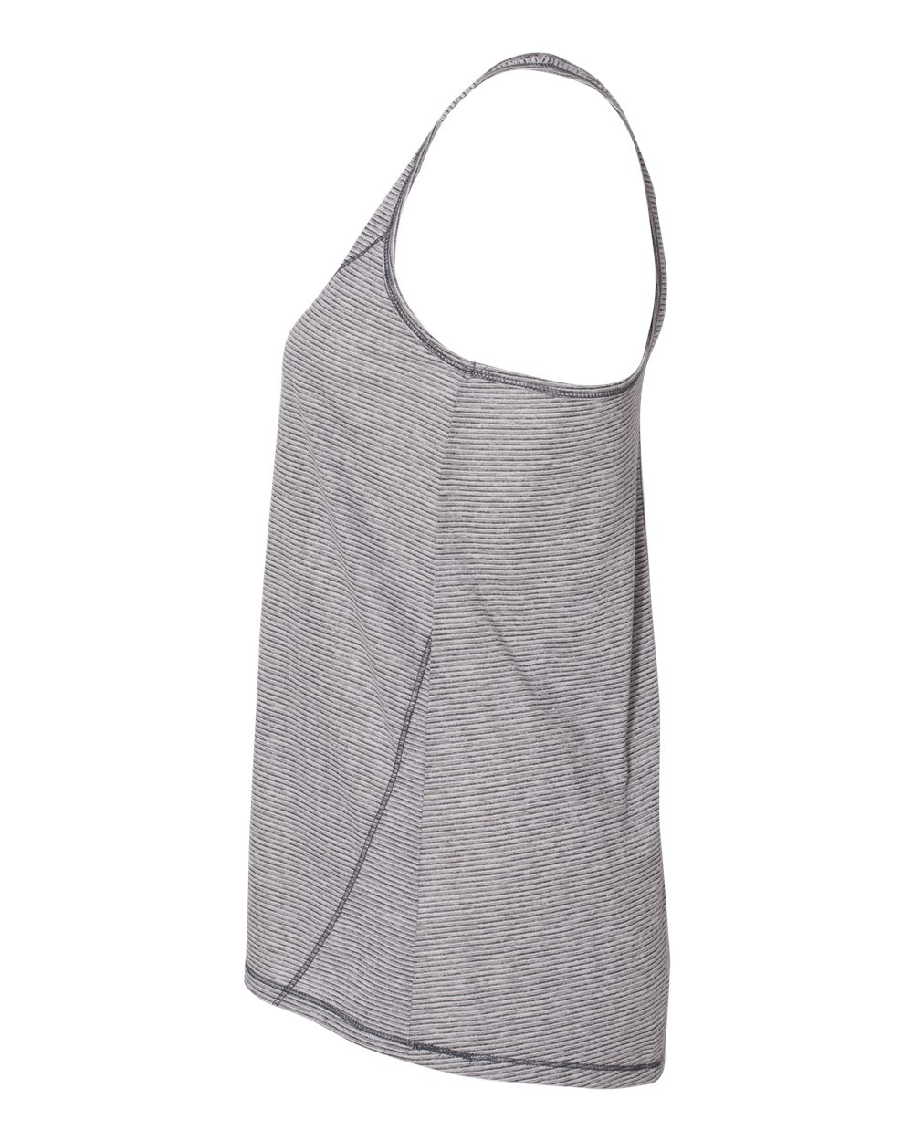 4.3 oz./yd_, 100% polyester cationic-dyed jersey Flare fit Scoop neckline Curved bottom Front yoke seam Racer back Heat transfer label