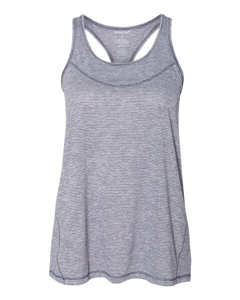 4.3 oz./yd_, 100% polyester cationic-dyed jersey Flare fit Scoop neckline Curved bottom Front yoke seam Racer back Heat transfer label