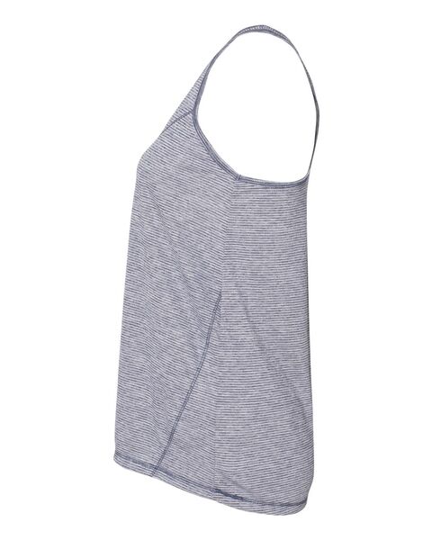 4.3 oz./yd_, 100% polyester cationic-dyed jersey Flare fit Scoop neckline Curved bottom Front yoke seam Racer back Heat transfer label