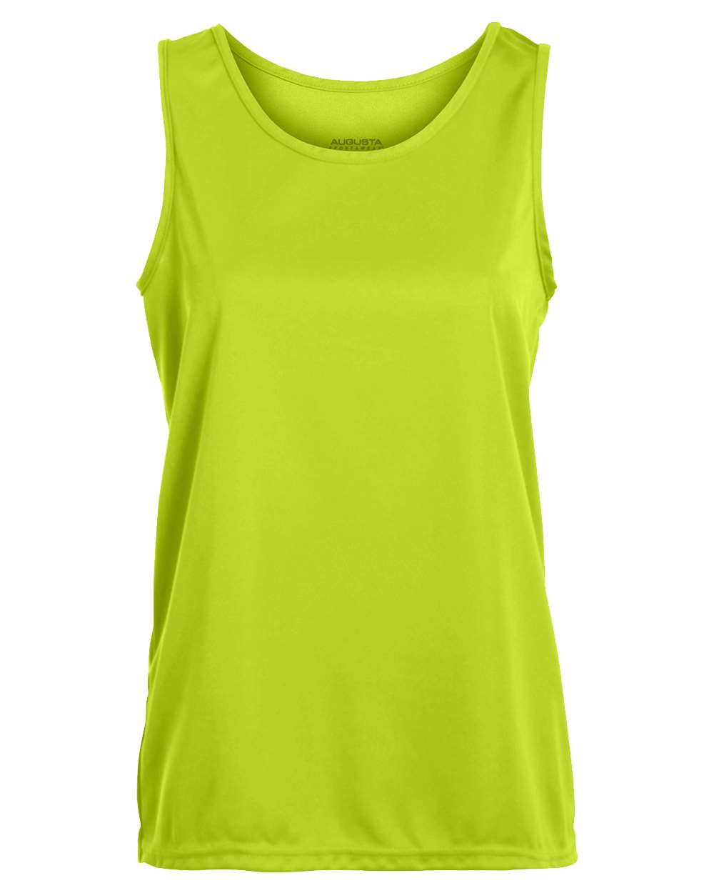 3.4 oz./yd_, 100% polyester wicking knit Wicks moisture away from the body Women's fit Self-fabric binding at neck and armholes Double-needle...