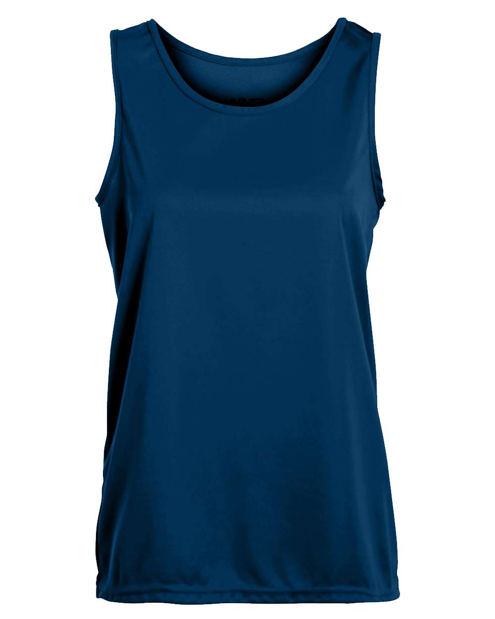 3.4 oz./yd_, 100% polyester wicking knit Wicks moisture away from the body Women's fit Self-fabric binding at neck and armholes Double-needle...