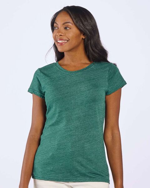 4.3 oz./yd_, 50/38/12 polyester/cotton/rayon Folded self neck opening Self-fabric neck tape Heat transfer label