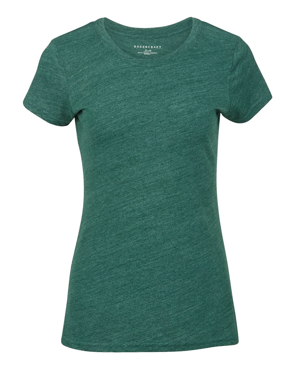 4.3 oz./yd_, 50/38/12 polyester/cotton/rayon Folded self neck opening Self-fabric neck tape Heat transfer label