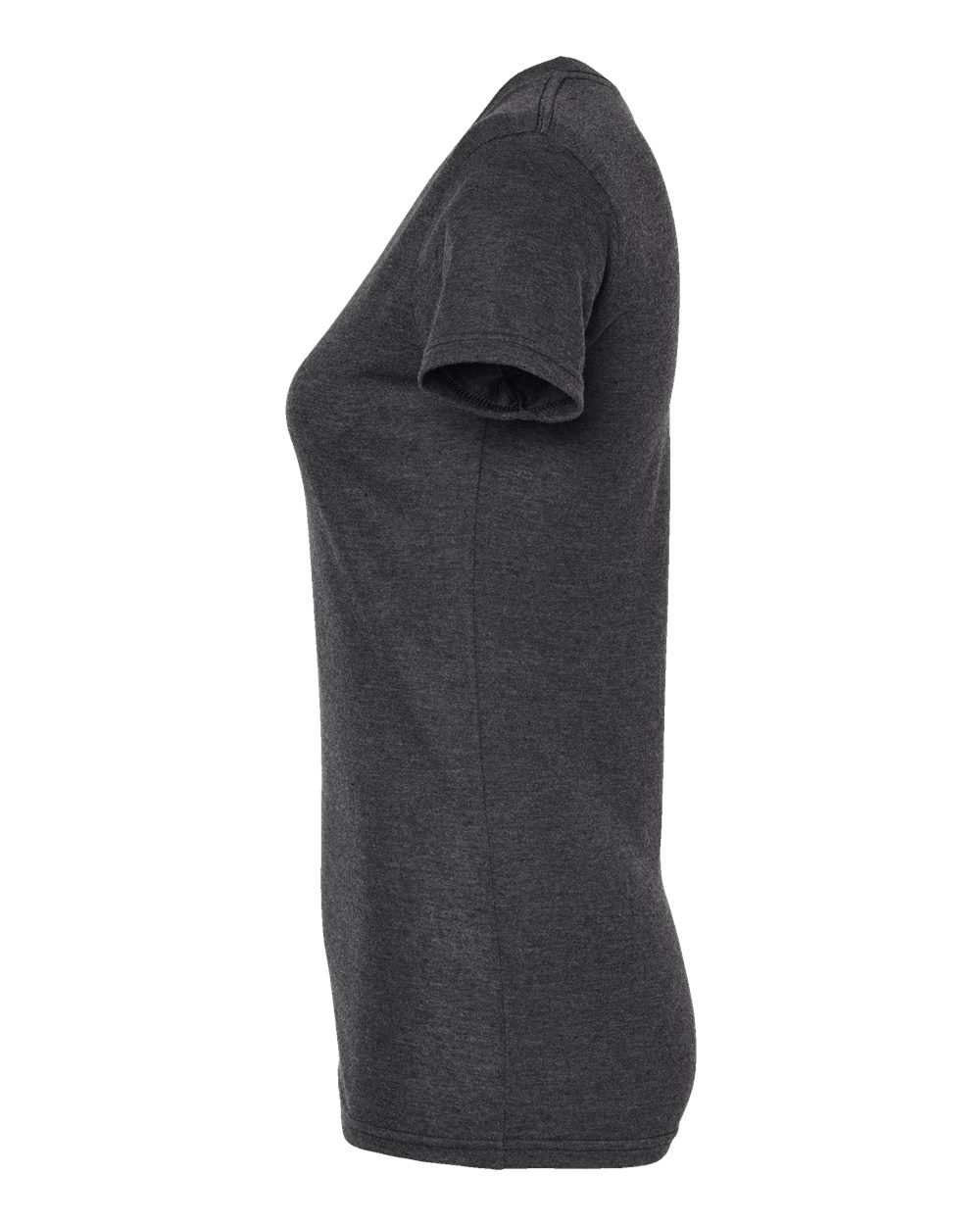 3.7 oz./yd_, 50/25/25 polyester/ring-spun USA premium cotton/rayon, 30 singles Feminine slim fit Ribbed crewneck collar Taped neck Side seams...