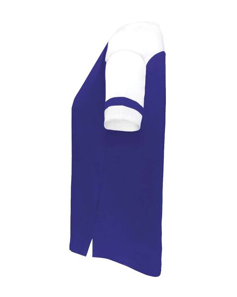 3.8 oz./yd_, 50/38/12 polyester/cotton/rayon triblend knit White/ Grey Heather is 4.7 oz./yd_ V-neck collar Set-in sleeves with angled...