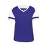 3.8 oz./yd_, 50/38/12 polyester/cotton/rayon triblend knit White/ Grey Heather is 4.7 oz./yd_ V-neck collar Set-in sleeves with angled...