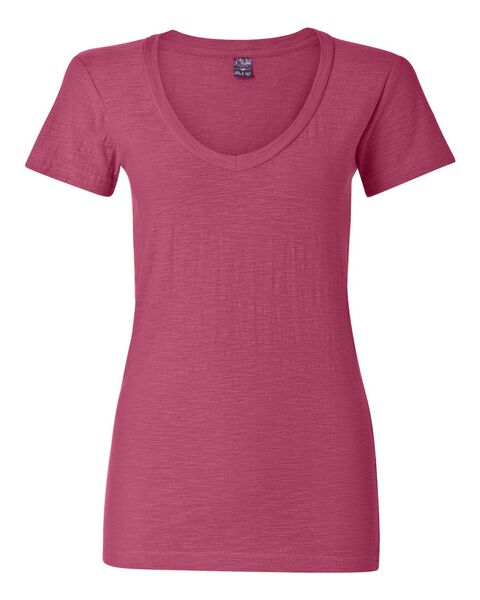 Take it easy in this classically casual v-neck 100% cotton slub jersey t-shirt.