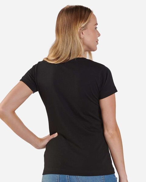 4.5 oz./yd_, 100% ring-spun cotton Ribbed V-neck collar Self-fabric back neck tape Heat sealed label