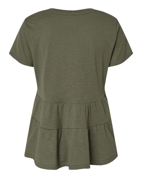 4.13 oz./yd_, 60/40 cotton/poly, slub jersey Regular fit       Ruffle hem detailing  Self-neck band/ self-back neck tape...