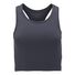 6.19 oz./yd_, 75/25 nylon/spandex interlock Slim fit High neckline Racerback Mid-length, cropped 1/2" bottom elastic