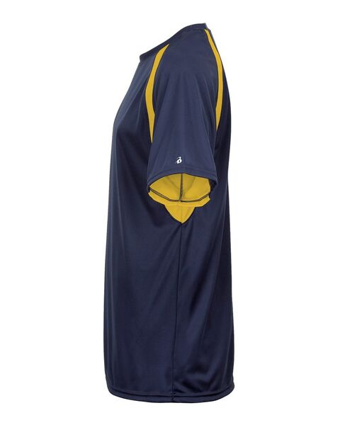 3.5 oz./yd_, 100% polyester moisture-management/antimicrobial performance fabric Contrast side and sleeve panel inserts Self-fabric collar Double-needle...