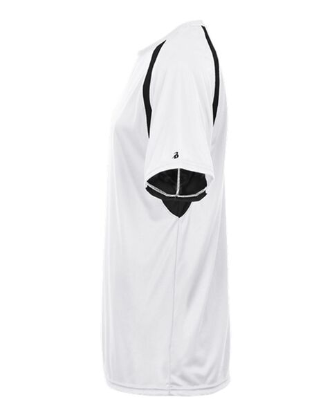 3.5 oz./yd_, 100% polyester moisture-management/antimicrobial performance fabric Contrast side and sleeve panel inserts Self-fabric collar Double-needle...
