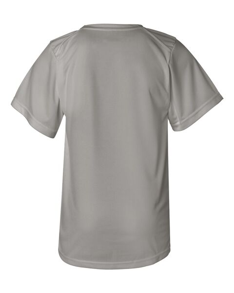 3.5 oz./yd_, 100% polyester moisture-management/antimicrobial performance fabric Self-fabric collar Badger Sport paneled shoulder for maximum movement...
