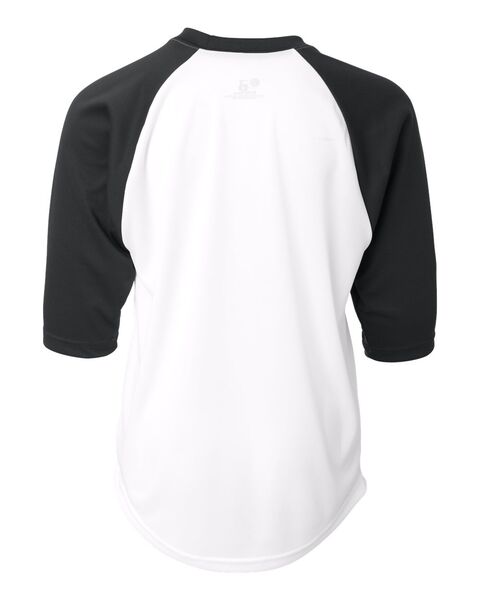3.5 oz./yd_, 100% polyester moisture-management/antimicrobial performance fabric Contrasting 3/4 raglan sleeves Contrast self-fabric collar...