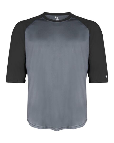 3.5 oz./yd_, 100% polyester moisture-management/antimicrobial performance fabric Contrasting 3/4 raglan sleeves Contrast self-fabric collar...