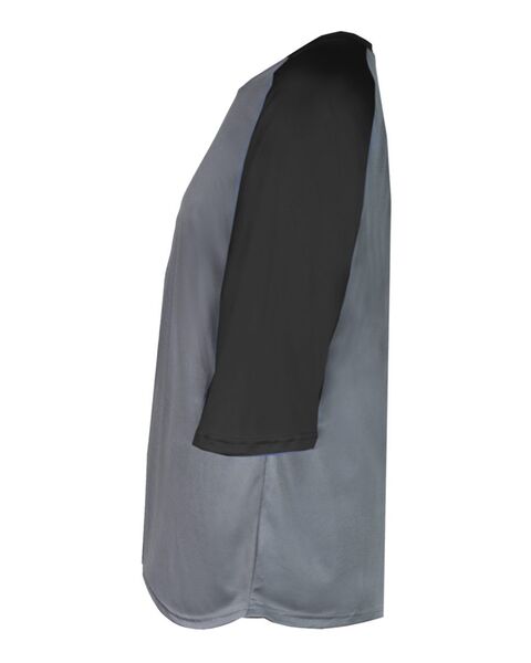 3.5 oz./yd_, 100% polyester moisture-management/antimicrobial performance fabric Contrasting 3/4 raglan sleeves Contrast self-fabric collar...