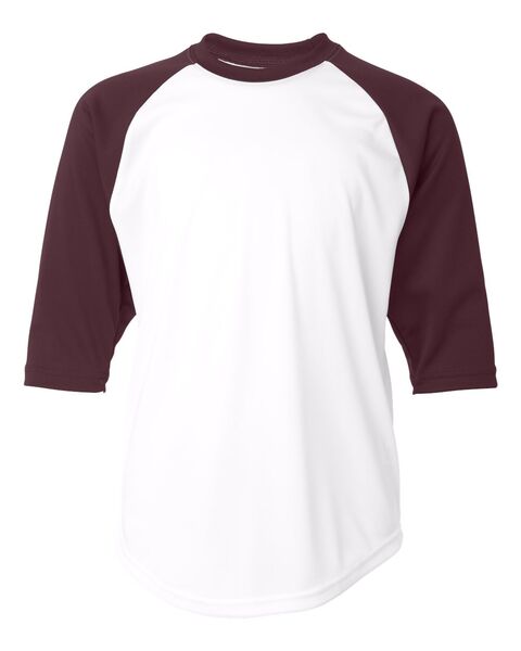 3.5 oz./yd_, 100% polyester moisture-management/antimicrobial performance fabric Contrasting 3/4 raglan sleeves Contrast self-fabric collar...