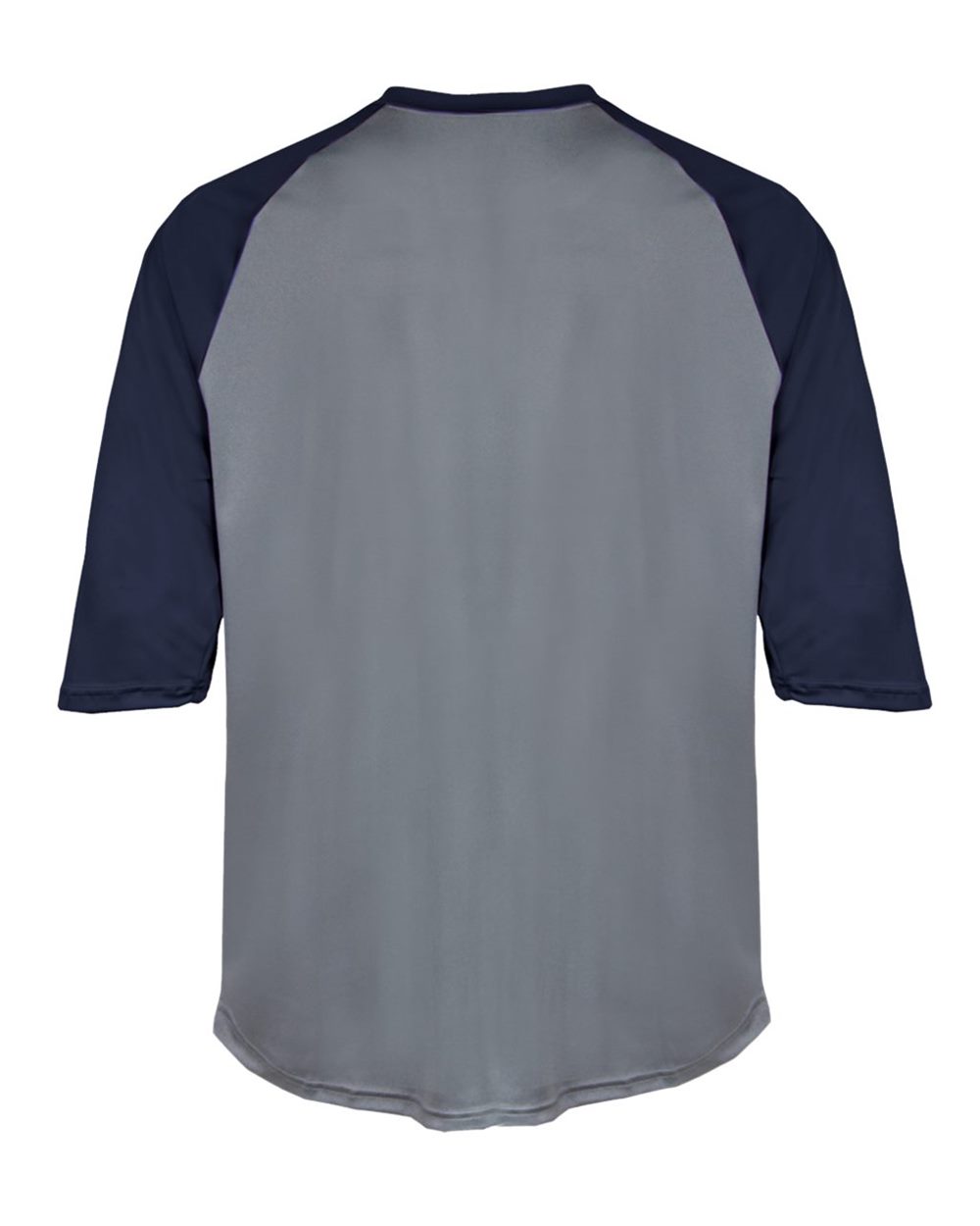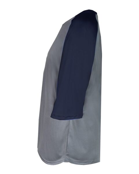 3.5 oz./yd_, 100% polyester moisture-management/antimicrobial performance fabric Contrasting 3/4 raglan sleeves Contrast self-fabric collar...