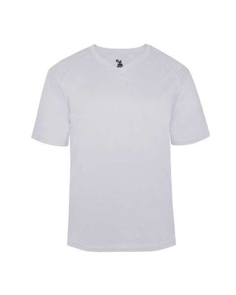 3.5 oz./yd_, 100% polyester moisture-management/antimicrobial performance fabric Badger Sport paneled shoulder for maximum movement Self-fabric V-neck...