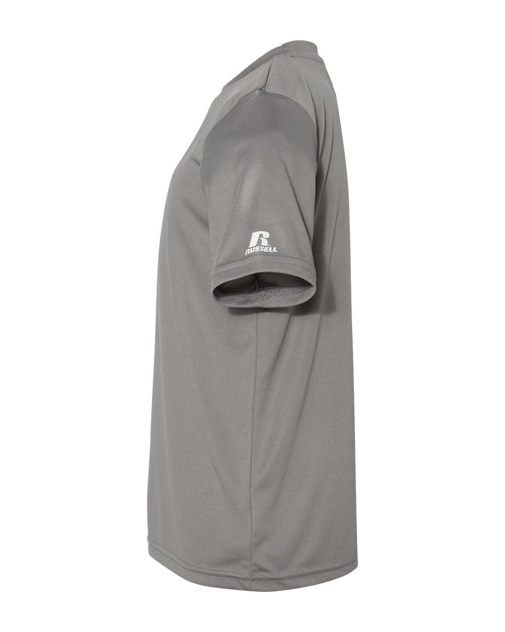 4.1 oz./yd_, 100% polyester Dri-Power¨ moisture management Anti-odor technology Self-fabric collar Contrast color back neck tape "R" Russell...