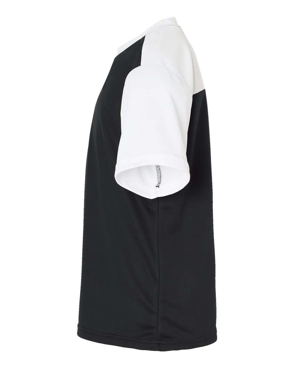 - Contrast-color modified raglan yoke and set-in sleeves