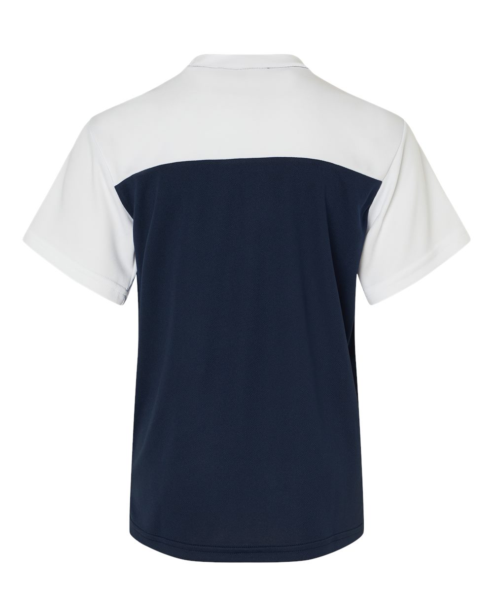 100% eXtreme diamond mock mesh cationic polyester with moisture-management Contrast-color modified raglan yoke and set-in sleeves Straight hemmed sleeve...