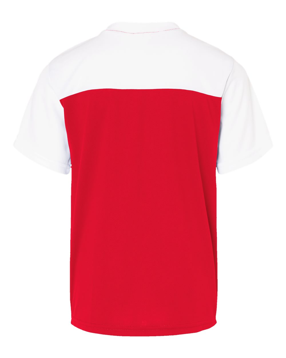 100% eXtreme diamond mock mesh cationic polyester with moisture-management Contrast-color modified raglan yoke and set-in sleeves Straight hemmed sleeve...