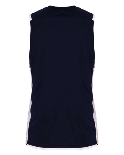 Double ply reversible basketball jersey with modified V-neck 100% colorfast polyester microfiber with body color side overlay, body color front and back...