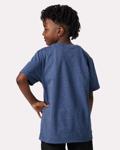 4.4 oz./yd_, 50/50 recycled cotton/recycled polyester, 26 singles Retail fit Double-needle stitching Back neck tape Shoulder-to-shoulder taping Locker...