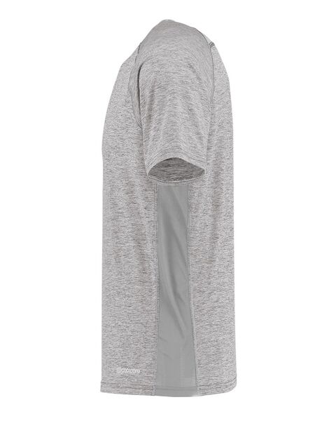 4.25 oz./yd_, 87/13 polyester/elastane heathered knit Coolcore¨ fabric is engineered to distribute moisture quickly 92/8 polyester knitted...