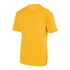 100% polyester heathered knit Moisture-wicking performance Crewneck collar Set-in sleeves Pad print label