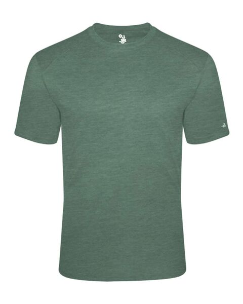 3.5 oz./yd_, 65/25/10 polyester/mercerized cotton/rayon moisture-management/antimicrobial performance fabric Double-needle hem Badger Sport paneled...