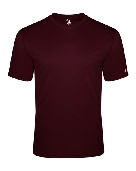 3.5 oz./yd_, 65/25/10 polyester/mercerized cotton/rayon moisture-management/antimicrobial performance fabric Double-needle hem Badger Sport paneled...