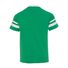 4.8 oz./yd_, 50/50 cotton/polyester knit jersey Contrast color 1x1 rib-knit V-neck collar Two white stripes on set-in double-needle stitched sleeves...