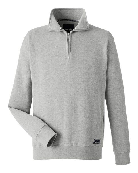 8.3 oz./yd_, 60/40 cotton/polyester mercerized fleece Stand collar Stiped neck tape Nautica branded quarter-zip closure Welt pockets Ribbed cuffs...