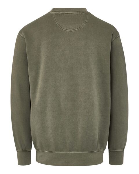 9.7 oz./yd_, 80/20 cotton polyester Classic fit Rib knit cuffs and waistband Sweat patch at back neck Garment dyed finish