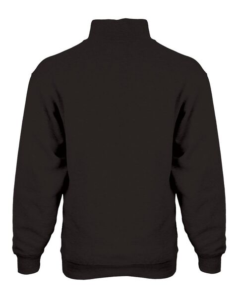9.5 oz./yd_, 60/40 ring-spun cotton/polyester Quarter-zip front with spandex reinforced 2x1 rib collar, cuffs waistband and side panels Full hidden...