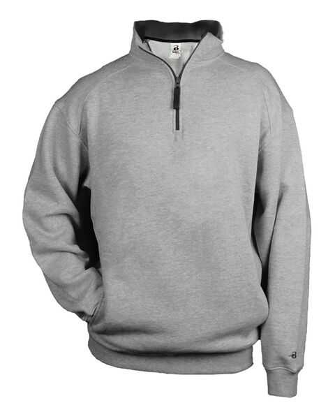 9.5 oz./yd_, 60/40 ring-spun cotton/polyester Quarter-zip front with spandex reinforced 2x1 rib collar, cuffs waistband and side panels Full hidden...