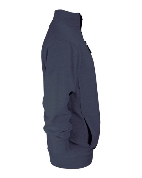 9.5 oz./yd_, 60/40 ring-spun cotton/polyester Quarter-zip front with spandex reinforced 2x1 rib collar, cuffs waistband and side panels Full hidden...