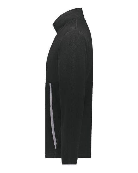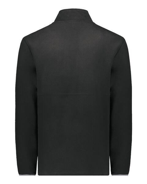 8 oz./yd_, 70/30 recycled polyester/polyester Quarter-zip with storm flap and zipper garage Front zippered pockets with spandex binding detail...