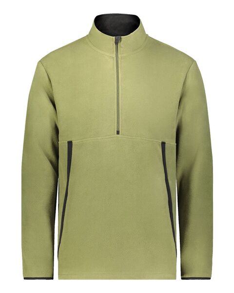 8 oz./yd_, 70/30 recycled polyester/polyester Quarter-zip with storm flap and zipper garage Front zippered pockets with spandex binding detail...
